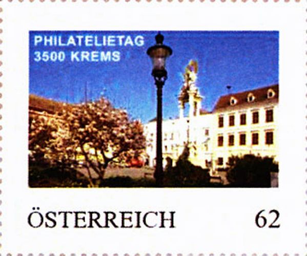 Die personalisierte Marke zeigt die Dreifaltigkeitssäule in Krems.