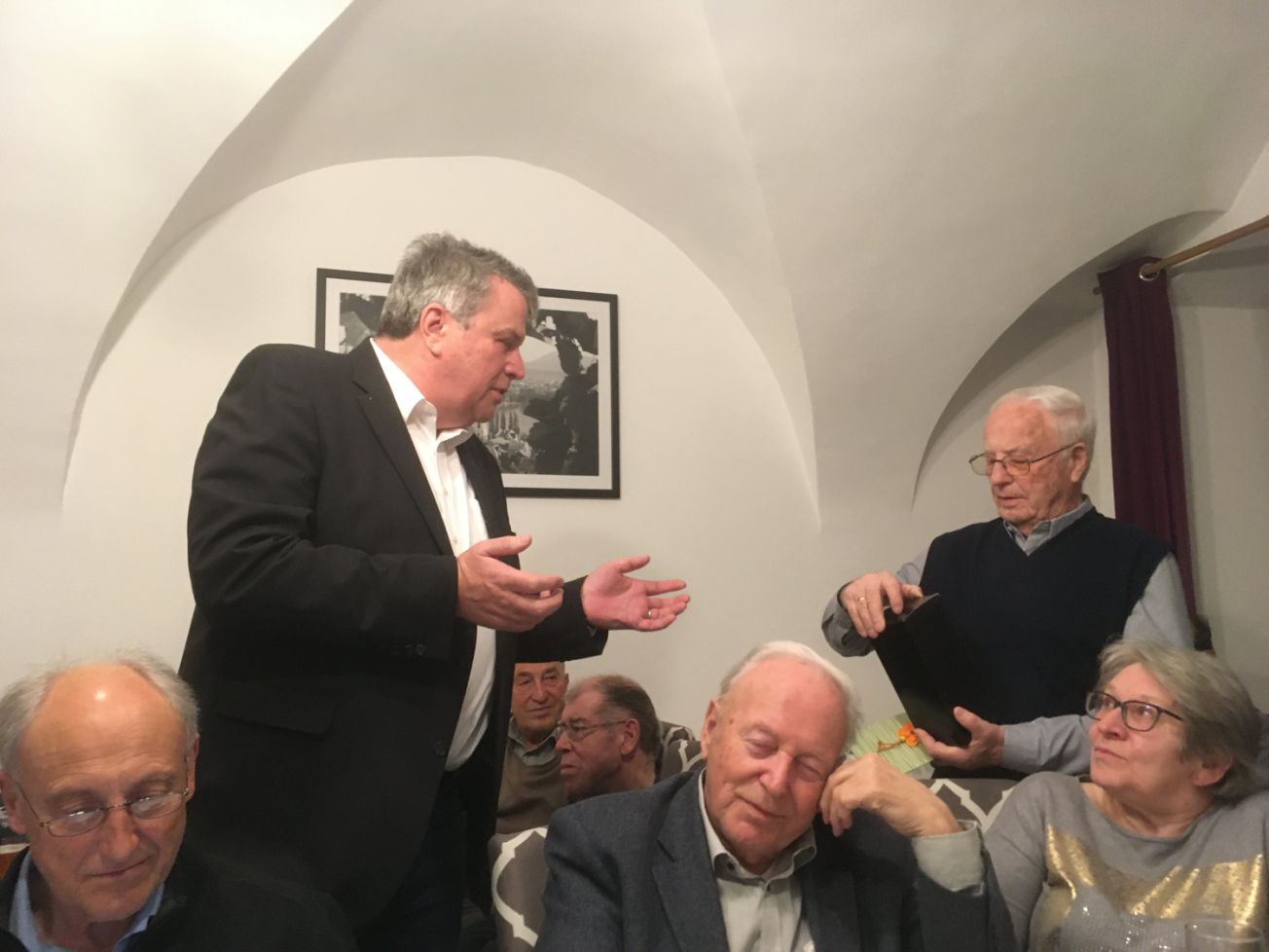 Endlich wieder eine Weihnachtsfeier aber trotzdem war vieles anders. Der Briefmarkensammlerverein Krems hielt seine Weihnachtfeier erstmals im Volksheim Furth ab. Der Saal ist bestens geeignet für derartige Veranstaltungen und die Bewirtung ist hervorragend. 24 Mitglieder fanden sich zu dem Treffen ein. Natürlich gab es wieder Ehrungen. Für seine 40 Jahre Mitgliedschaft wurde Jürgen Übl geehrt. Herzliche Gratulation für diese lange Mitgliedschaft. Unter den Gratulanten war auch der Schriftführer des Verbands Österreichischer Philatelisten Mag. Erich Böck und der Obmann des BSV Krems Dr. Ralph Theuer.